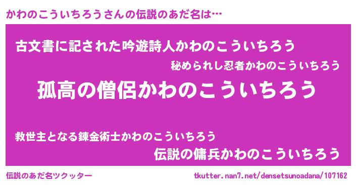 | 意味不明あだ名 | 『とにかく怪しいかわのこういちろう』 |