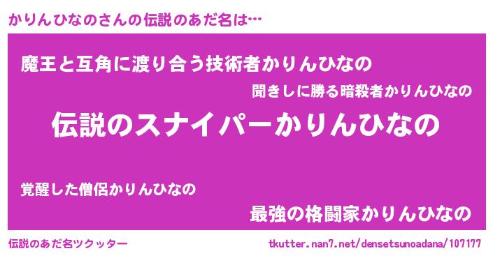| 胡散臭い通販商品みたいなあだ名 | 『必ず成功する霊験あらたかなお札…その名も「かりんひなの」』 |