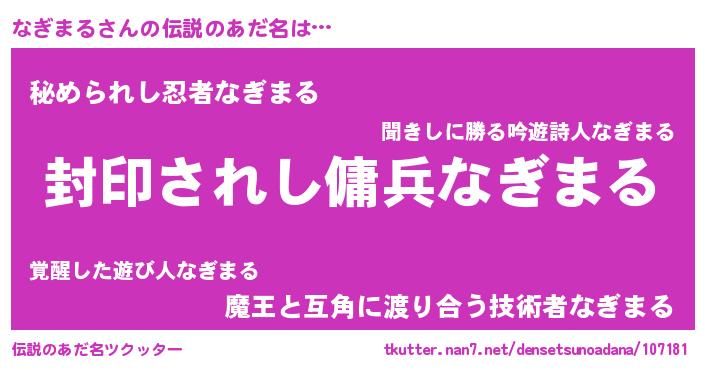 | 欧米人風あだ名 | 『マイケルなぎまる』『ダニエルなぎまる』 |