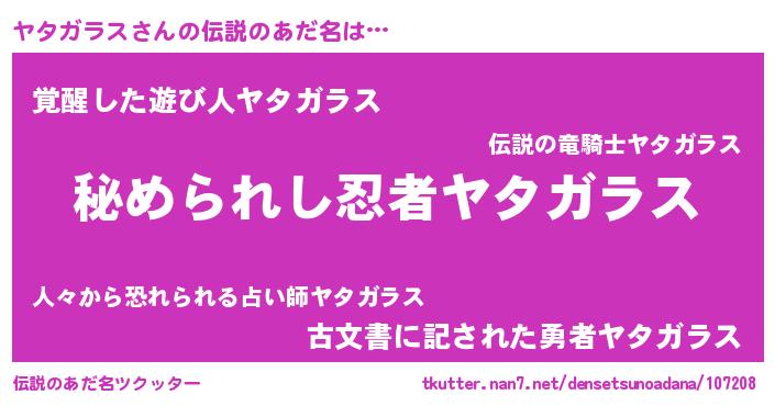| ヒーロー風カッコイイあだ名 | 『仮面ヤタダー』『天弓騎士ヤタ』 |