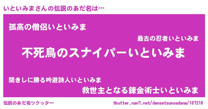 | 意味不明あだ名 | 『ペロリンいといみま』『自称いといみま』 |