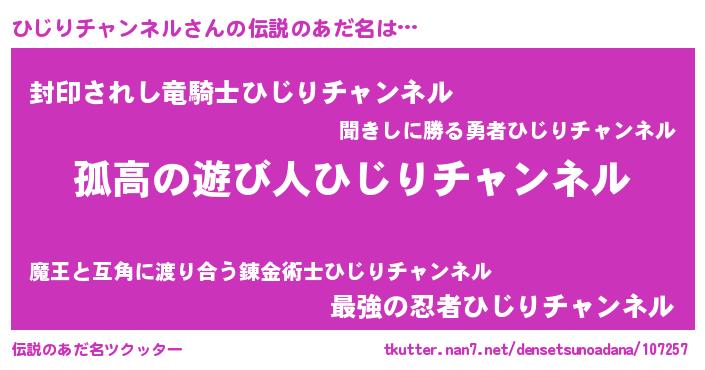 | ポケモン風あだ名 | 『ヒヒジリチャンネル』『ヒジセウス』 |