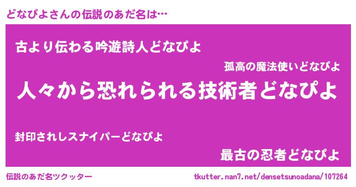 | ヘコむあだ名 | 『どなぴよ(笑)』『なまこ酢』 |