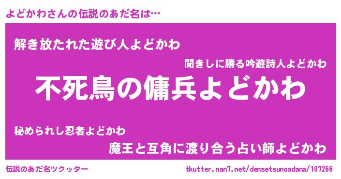 | 意味不明あだ名 | 『たけのこ科よどかわ属』『自称よどかわ』 |