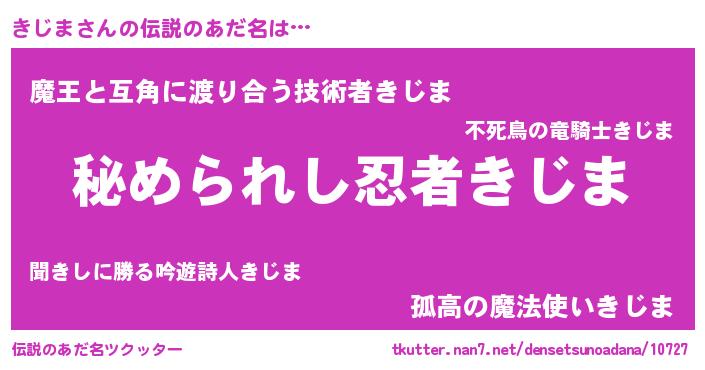 | 意味不明あだ名 | 『住所不定無職きじま(56歳)』『自称きじま』 |