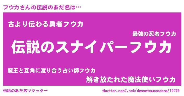 | ヒーロー風カッコイイあだ名 | 『スーパーフウカ』『ネオフウカ』 |