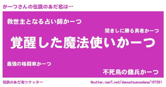 | 男性向けラノベタイトル風あだ名 | 『かーつに滅ぼされるだけの簡単なお仕事です』 |