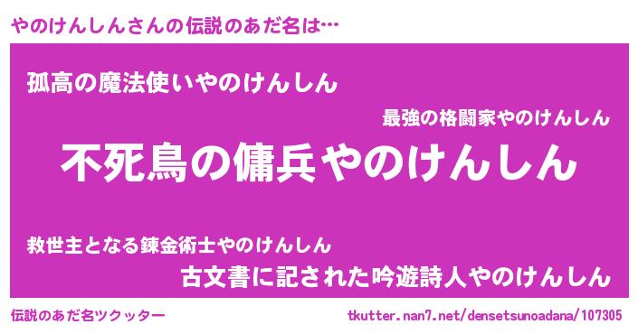 | 男性向けラノベタイトル風あだ名 | 『やのけんしんの憂鬱』 |