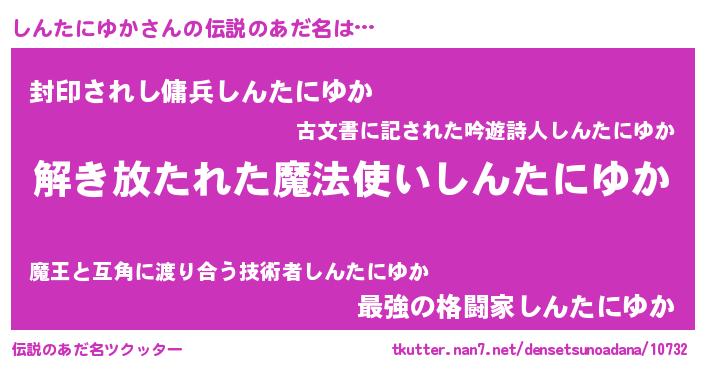 | ヒーロー風カッコイイあだ名 | 『幻影騎士シン』『スーパーシンタニユカ』 |