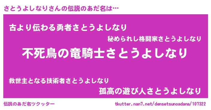 | ヒーロー風カッコイイあだ名 | 『サイバー戦士サトウヨシナリ』 |