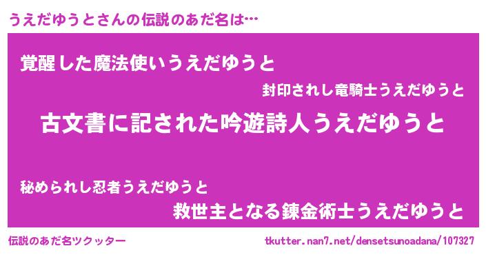 | ヘコむあだ名 | 『うえだゆうと(笑)』『うえぷりん』 |