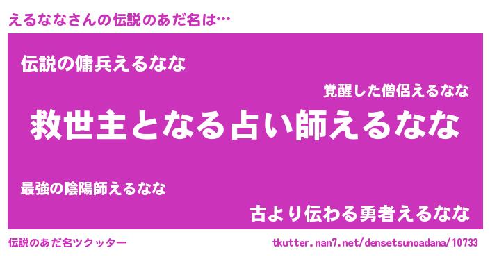 | ヒーロー風カッコイイあだ名 | 『天空の使者えるなな』『ネオエルナナ』 |