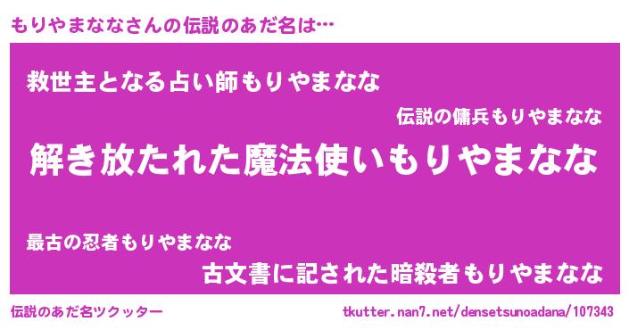 | 女子向けラノベタイトル風あだ名 | 『もりやまななの玉の輿計画!』 |