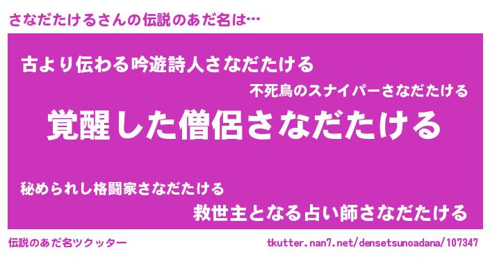 | ヒーロー風カッコイイあだ名 | 『天弓騎士サナ』『最強戦士サナダタケル』 |