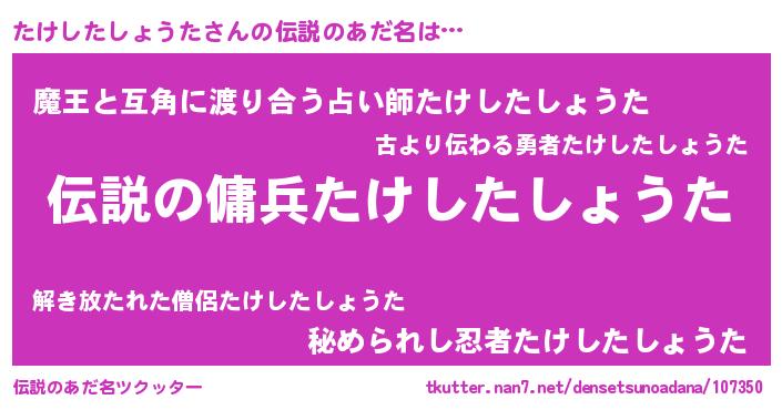 | 意味不明あだ名 | 『自称たけしたしょうた』 |