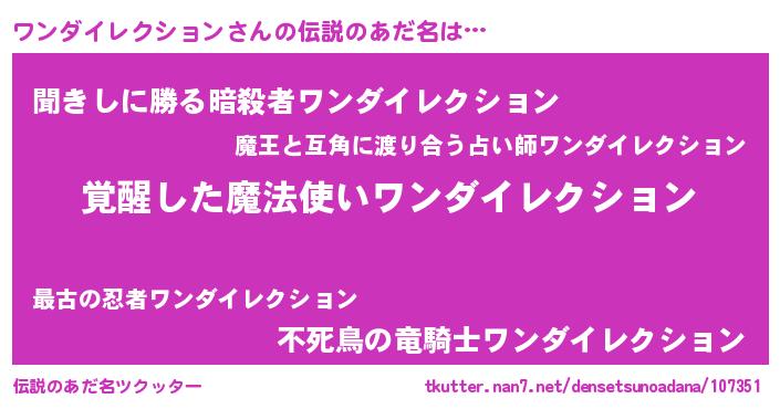 | 胡散臭い通販商品みたいなあだ名 | 『あなたにだけ特別に提供する100年もののヴィンテージワイン…その名も「ワンダイレクション」』 |