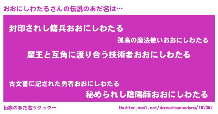 | 女子向けラノベタイトル風あだ名 | 『おおにしわたるアンティーク』 |
