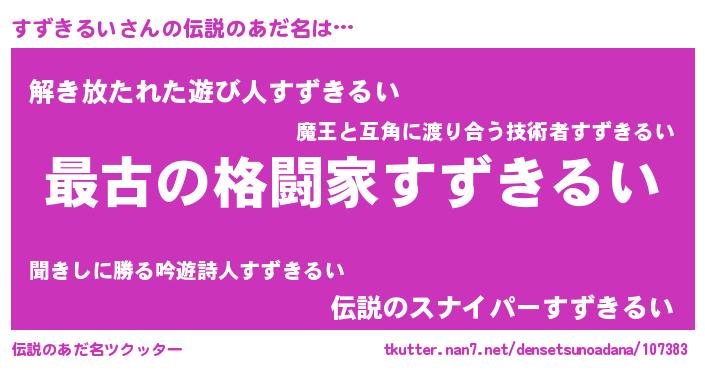 | ファンタジー風あだ名 | 『エターナルスズキルイー』『ゼスズトゥ』 |