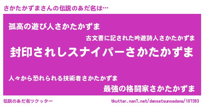 | ヒーロー風カッコイイあだ名 | 『スーパーサカタカズマ』『仮面サカダー』 |