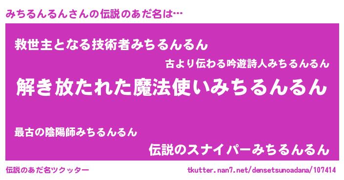 | 男性向けラノベタイトル風あだ名 | 『ダンジョンにみちるんるんを求めるのは間違っているだろうか』 |