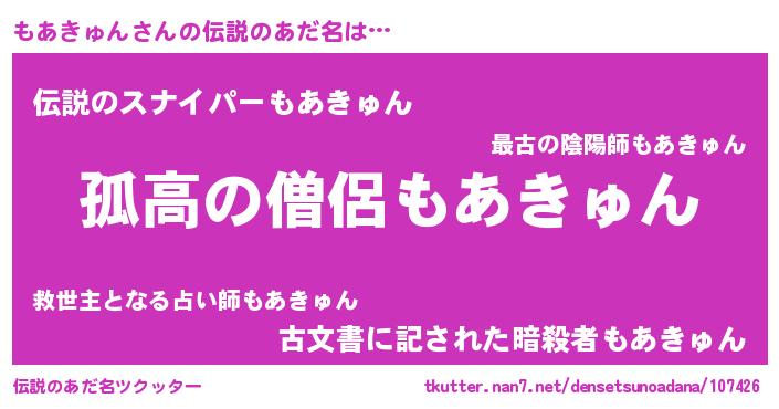 | 胡散臭い通販商品みたいなあだ名 | 『信頼と実績のネックレス…その名も「もあきゅん」』 |