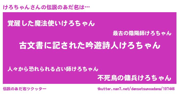 | 意味不明あだ名 | 『永久保存けろちゃん』『自称けろちゃん』 |