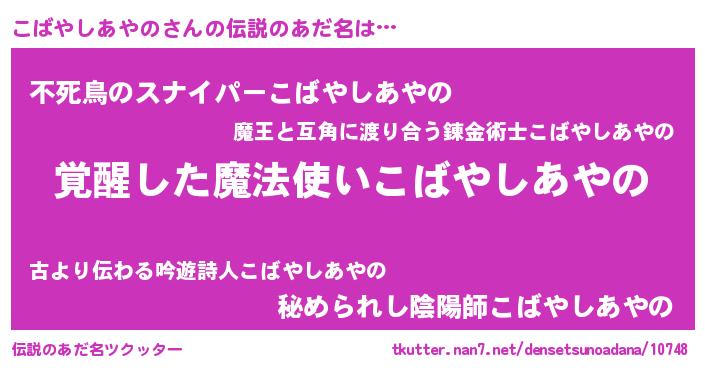 | 女子向けラノベタイトル風あだ名 | 『こばやしあやの様がみてる』 |