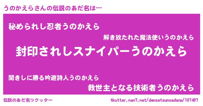 | 意味不明あだ名 | 『住所不定無職うのかえら(89歳)』 |
