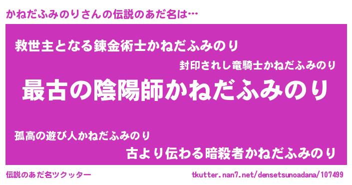 | ファンタジー風あだ名 | 『エターナルカネダフミノリー』 |