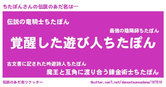 | 男性向けラノベタイトル風あだ名 | 『この素晴らしい世界にちたぽんを!』 |