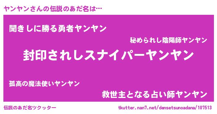 | 意味不明あだ名 | 『住所不定無職ヤンヤン(98歳)』 |
