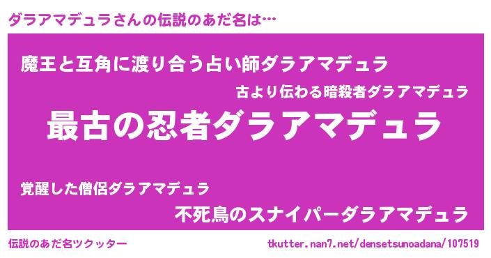 | 男性向けラノベタイトル風あだ名 | 『転生したらダラアマデュラだった件』 |
