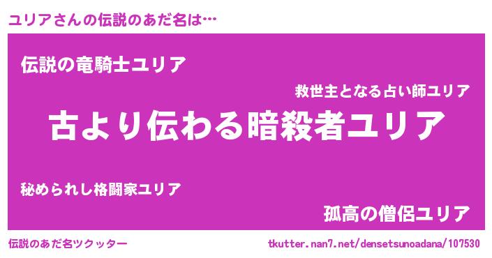 | ヘコむあだ名 | 『ユリア(爆)』『ユリにー』『ユリを』 |