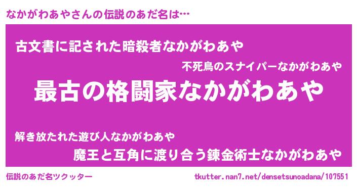 | ファンタジー風あだ名 | 『エターナルナカガワアヤー』 |