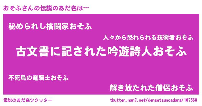 | 意味不明あだ名 | 『永久保存おそふ』『おそふフォーエバー』 |