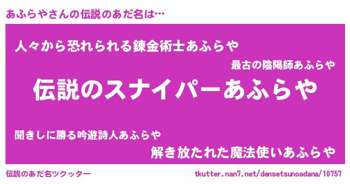 | 胡散臭い通販商品みたいなあだ名 | 『必ず成功する霊験あらたかなお札…その名も「あふらや」』 |