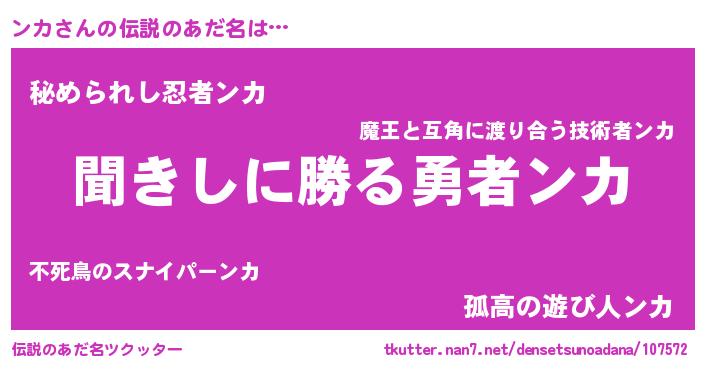 | 男性向けラノベタイトル風あだ名 | 『ンカスレイヤー』 |