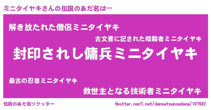 | 胡散臭い通販商品みたいなあだ名 | 『億万長者になれる水晶球…その名も「ミニタイヤキ」』 |