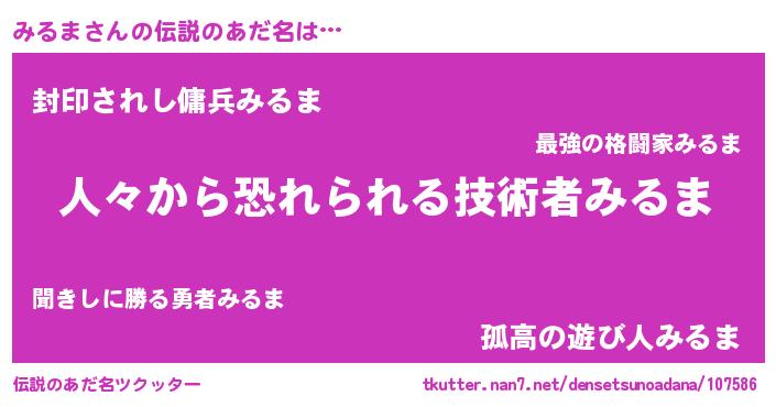 | 意味不明あだ名 | 『眠気覚ましガムみるま味』『自称みるま』 |