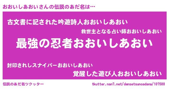| 男性向けラノベタイトル風あだ名 | 『おおいしあおいに滅ぼされるだけの簡単なお仕事です』 |