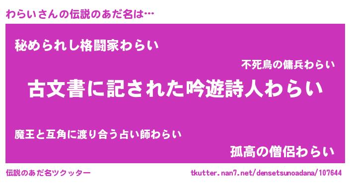 | ヒーロー風カッコイイあだ名 | 『ネオワライ』『仮面ワラダー』 |