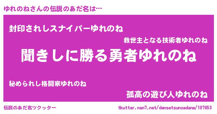 | ヒーロー風カッコイイあだ名 | 『仮面ユレダー』『ネオユレノネ』 |