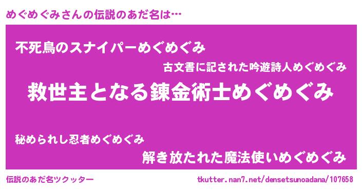 | ファンタジー風あだ名 | 『クインメット』『ゼメグトゥ』 |