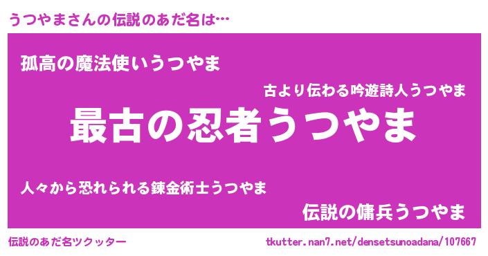 | 意味不明あだ名 | 『うつやまフォーエバー』『自称うつやま』 |