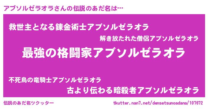 | 欧米人風あだ名 | 『ダレノガレアブソルゼラオラ』 |