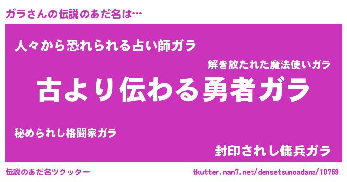 | ヒーロー風カッコイイあだ名 | 『ネオガラ』『友情の使者ガラ』 |