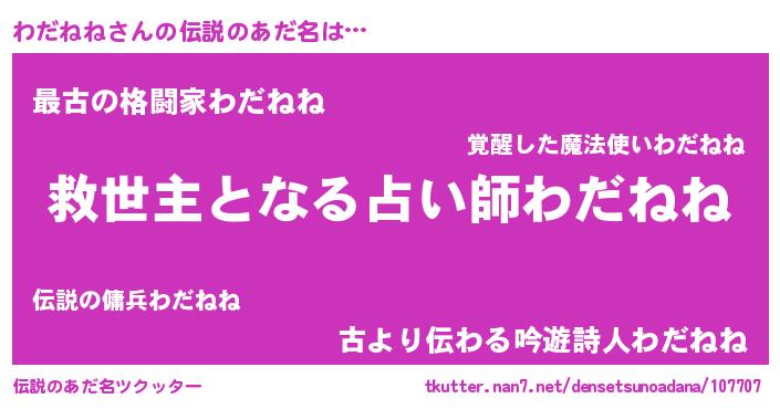 | 男性向けラノベタイトル風あだ名 | 『この素晴らしい世界にわだねねを!』 |