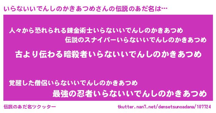 | 胡散臭い通販商品みたいなあだ名 | 『来世でも幸せになれる健康食品…その名も「いらないいでんしのかきあつめ」』 |