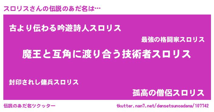| ヒーロー風カッコイイあだ名 | 『愛の使者スロリス』『最強戦士スロリス』 |