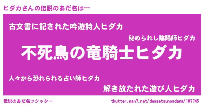 | 女子向けラノベタイトル風あだ名 | 『ヒダカ姫と円卓の騎士』 |